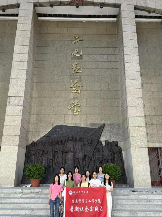 二七纪念堂前,青年学子高擎院旗,沉浸其中,前辈们奋斗的身影仿佛历历在目。活动一结束,实践团成员便纷纷郑重提交入党申请书。信息科技与工程学院的队员们将"二七精神"融入科技报国志向,红色基因由此融入一行行青春代码。