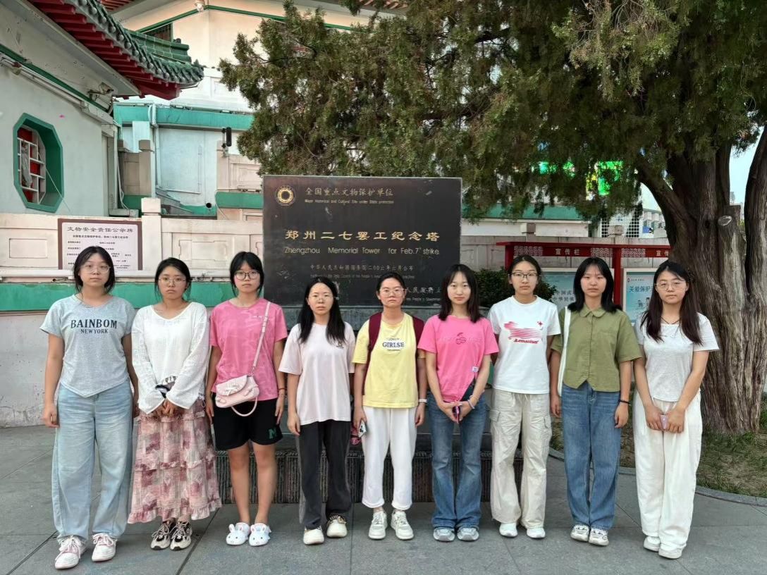 “飞扬青春实践队”社会实践团一行9人赴郑州市二七广场二七纪念塔开展“致敬二七英烈,传承红色基因”主题社会实践活动。同学们高举院旗,在塔前庄严列队,通过沉浸式参观、微宣讲、互动问答等形式,深刻体悟“二七精神”的时代价值,上了一堂别开生面的“大思政课”。
