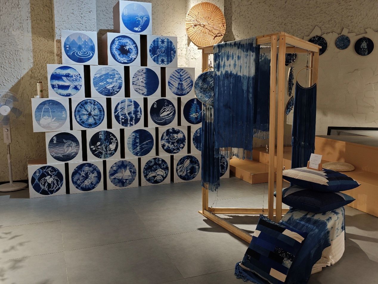 图二 团队成员拍摄的蓝染布艺