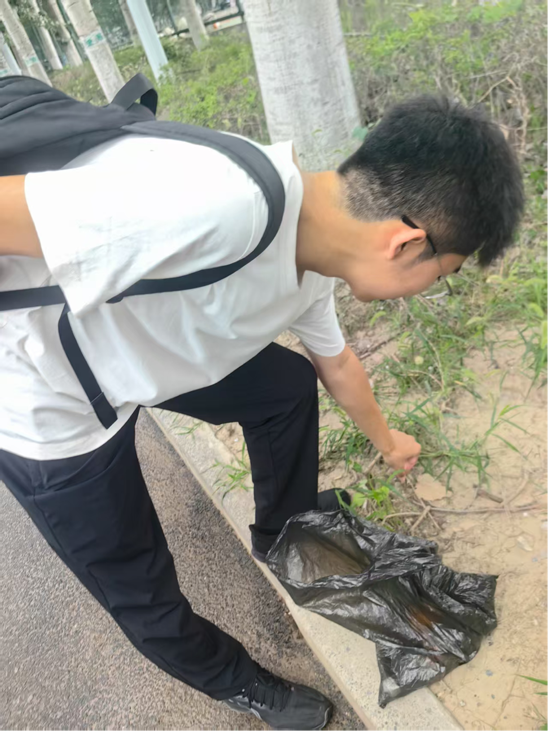 活动伊始,团队成员提前制定详细方案,将任务划分为三组:垃圾清理组、环保宣传组与绿植养护组。垃圾清理组携带夹子、垃圾袋等工具,沿公园主干道、湖边步道及休闲广场展开 “地毯式” 清理,重点捡拾游客丢弃的塑料瓶、零食包装袋、烟头等杂物。过程中,成员们不仅细致清理可见垃圾,还借助手套深入草丛、灌木丛等卫生死角,确保不留清洁盲区。仅 1.5 小时,团队便清理出 8 袋各类垃圾,并按照可回收物、其他垃圾进行分类打包,交由公园管理处统一处理。
