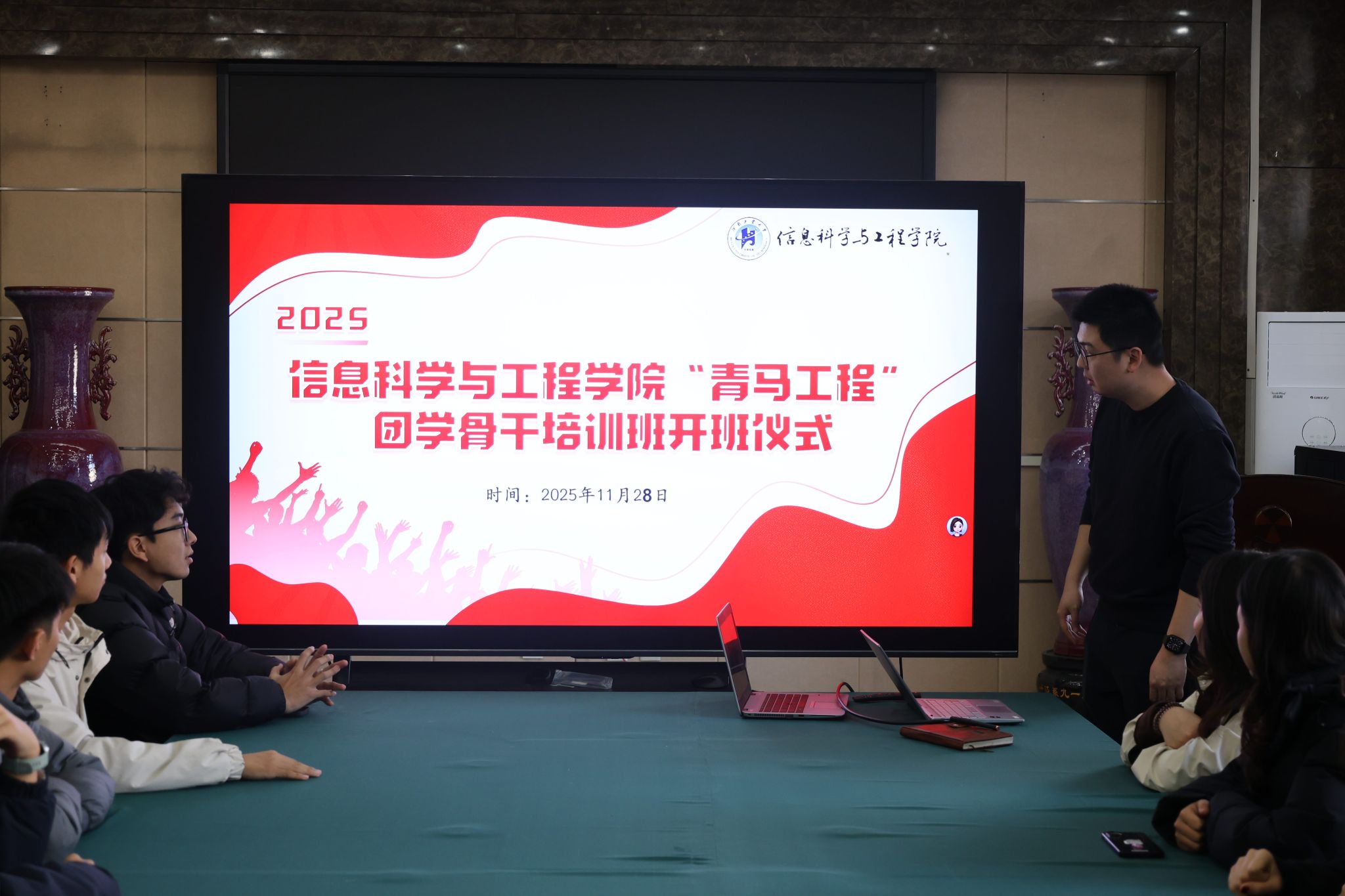 仪式结束后,本期“青马工程”培训班“第一课”随即开讲。王之瑞以“数字时代学生骨干的‘源代码’与‘算法’重塑”为题进行授课。他指出,学生骨干的成长如同编写程序,既需要正确的“源代码”即政治立场作为底层逻辑,也需要高效的“算法”即工作方法来解决复杂问题。他结合学院当前的重点工作,深入剖析了学生骨干在网络舆论引导、学风建设数字化转型等方面的角色定位,勉励大家要善于运用系统思维和大数据视野去发现问题、解决问题,以“信息人”特有的严谨与敏锐,推动学院学生工作实现智慧化、高效化发展。