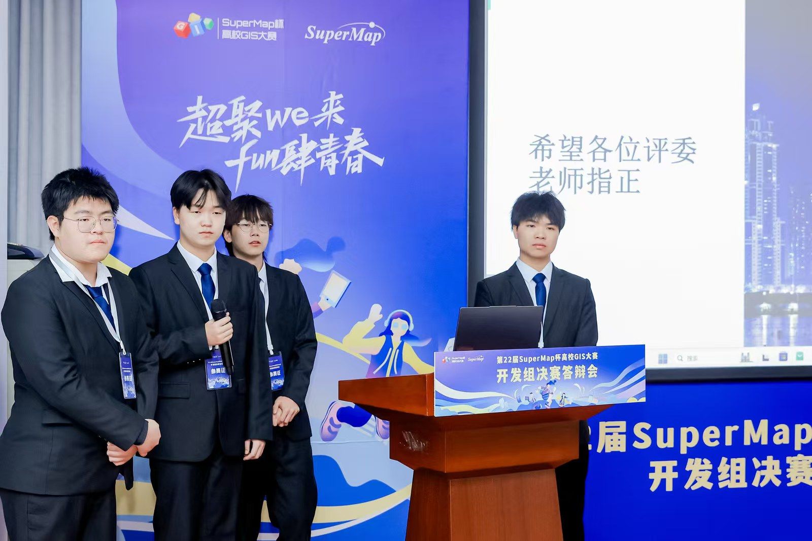 12月8日,由中国地理学会、中国地理信息产业协会主办的第二十二届SuperMap杯全国高校GIS(空间信息与数字技术专业地理信息系统技术)大赛决赛答辩暨颁奖典礼在北京超图公司总部举行。本次大赛共有来自武汉大学,中国地质大学(武汉),深圳大学、大象传媒