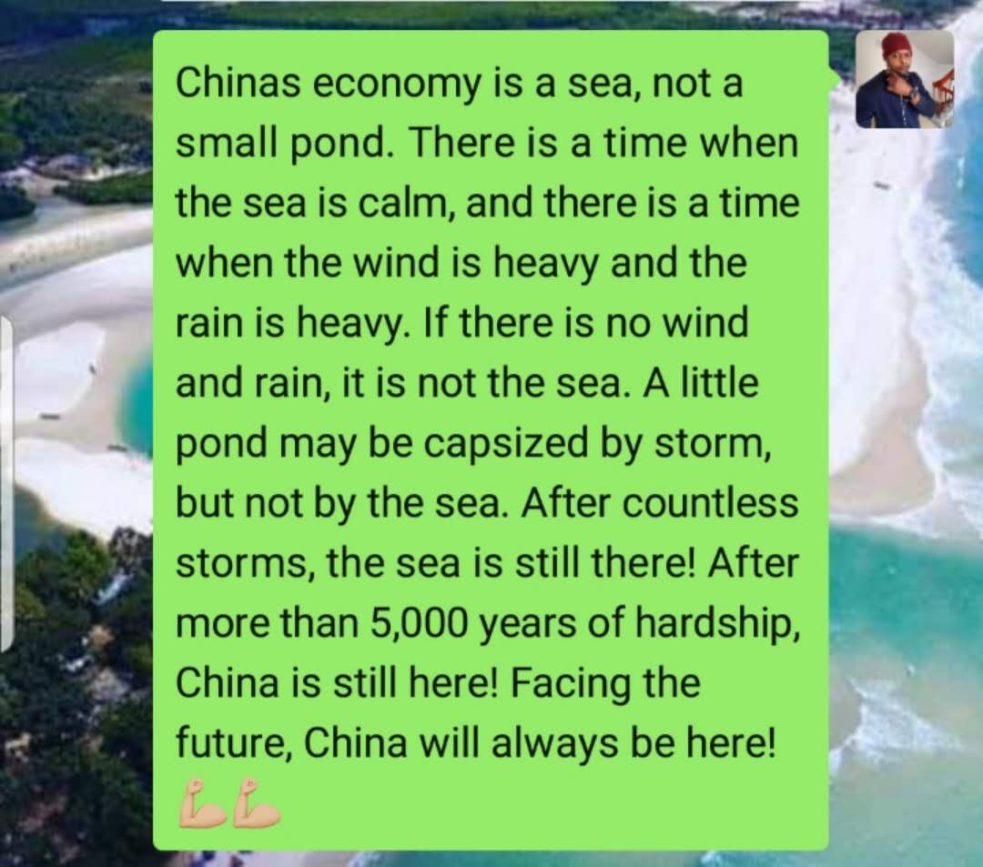 塞拉利昂硕士留学生Ellie(艾莉)表达了对中国经济的信心:“中国经济是一片海洋,不是一个小池塘。有一段时间大海平静,也有一段时间风雨交加。如果没有风雨,那就不是大海。一个小池塘可能会被暴风雨倾覆,但大海不会被倾覆。无数的风暴过后,大海还在那里!历经5000多年的艰辛,中国依然在这里!面向未来,中国将永远在屹立不倒!”